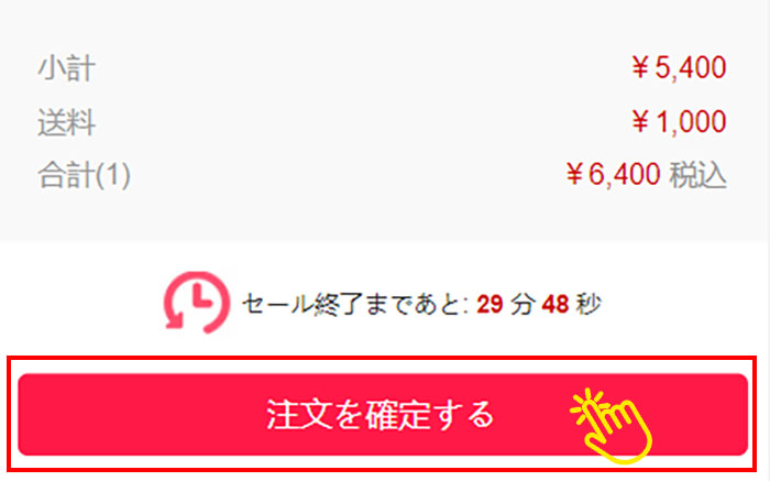 内容に間違いがなければ「注文を確定する」ボタンを押してください。