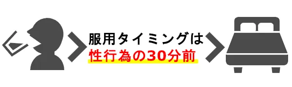 服用後約15~30分ほどで効果を実感できるため、性行為の30分前の服用がオススメです