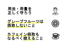 ・多量摂取した場合、重度な副作用を引き起こすリスクが高まるため、必ず用量を守って服用してください。